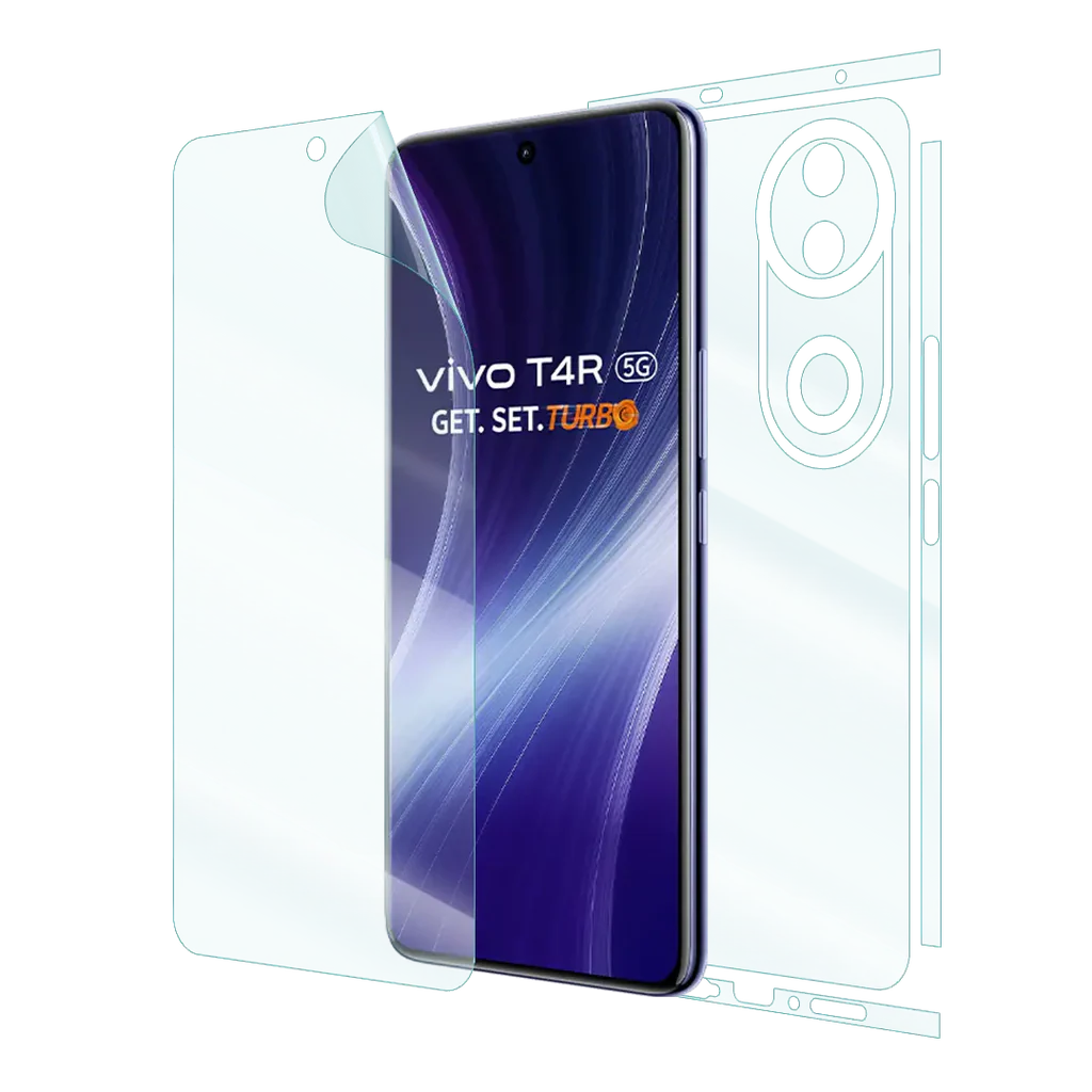 The protector appears precisely cut to fit the screen, including a small opening for the front camera. - Back protective film